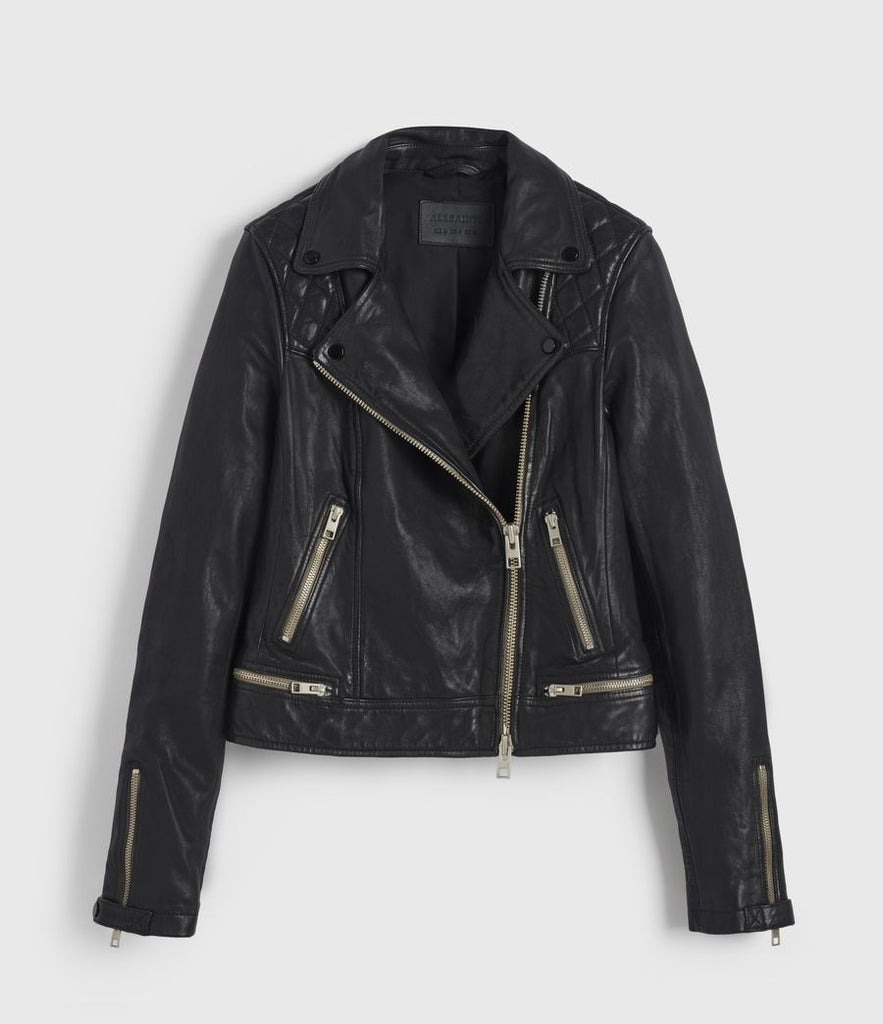 NOTES The Conroy Biker Jacket is a classic leather outerwear piece, inspired by vintage motorcycle jackets. Featuring traditional detailing - add attitude. Zip sleeves Asymmetric zip Quilted shoulder panels Model is 5'10"/177cm and wearing size...